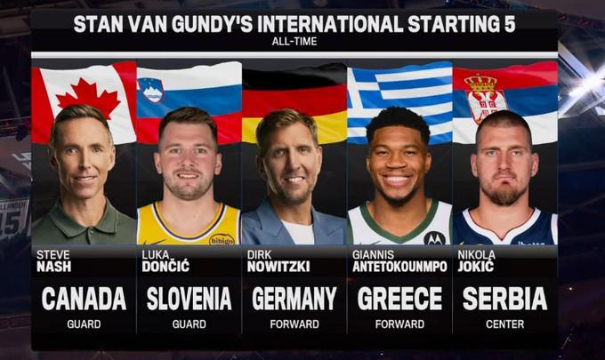 大范甘迪评国际球员最佳五人组:纳什&诺维茨基&东契奇&字母哥&约基奇